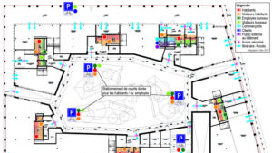 Parallèlement à ces réflexions sur les potentiels de mutualisation, un concept de gestion des flux a été développé par type d’usager, par niveau du bâtiment et par cage d’ascenseurs ou escaliers.