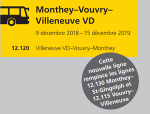 La nouvelle ligne de bus 12.120 reliant Monthey à Villeneuve vient d’être mise en service le 9 décembre 2018. La ligne dessert le site de l’Hôpital Riviera Chablais Vaud-Valais (HRC) à Rennaz, qui ouvrira ses portes en mai 2019. Il sera alors possible de rejoindre le nouvel hôpital en 4 minutes depuis Villeneuve et 48 minutes depuis Monthey sans changement. Cette nouvelle ligne fait suite à une étude réalisée en 2013 par Citec en partenariat avec RR&A, à la demande des Cantons de Vaud et du Valais. Il s’agissait alors de repenser l’organisation des transports publics régionaux dans les Chablais vaudois et valaisan en lien notamment avec l’ouverture du Centre hospitalier de Rennaz.