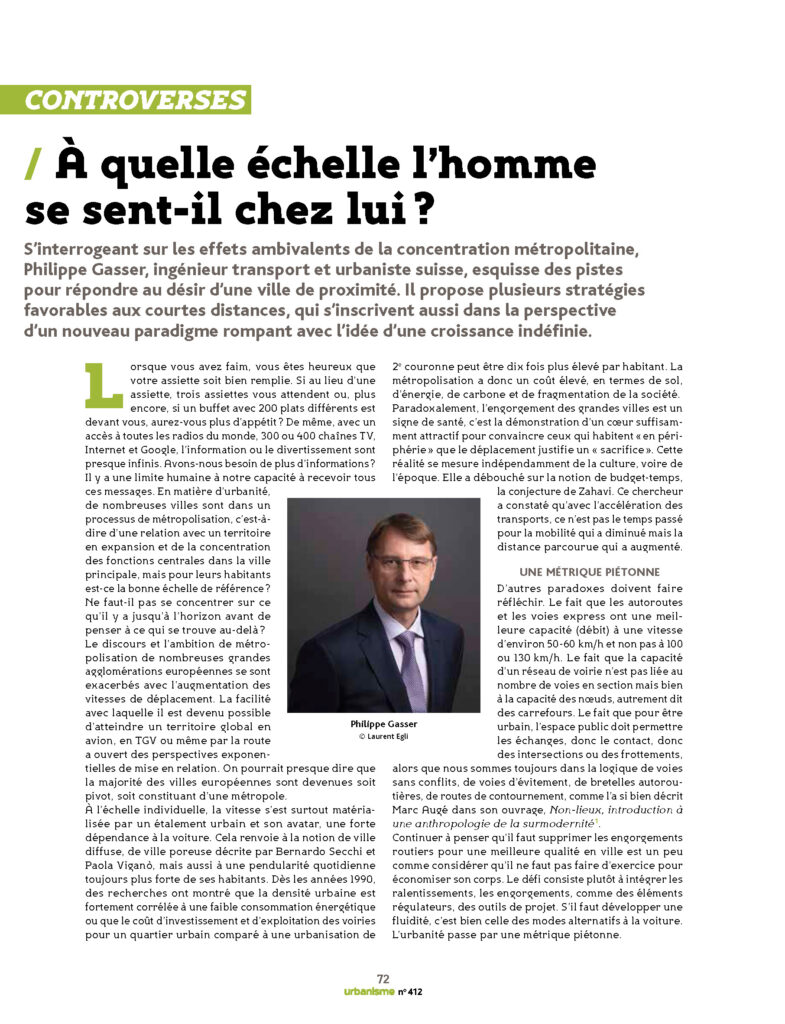 Article de Philippe Gasser, paru dans la revue Urbanisme de mars 2019.