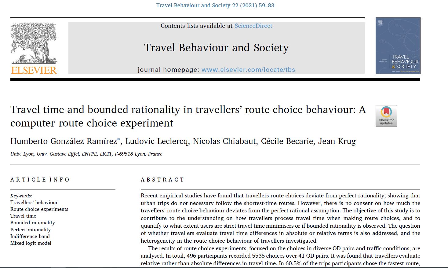 Recent empirical studies have found that travellers route choices deviate from perfect rationality, showing that urban trips do not necessary follow the shortest-time routes.