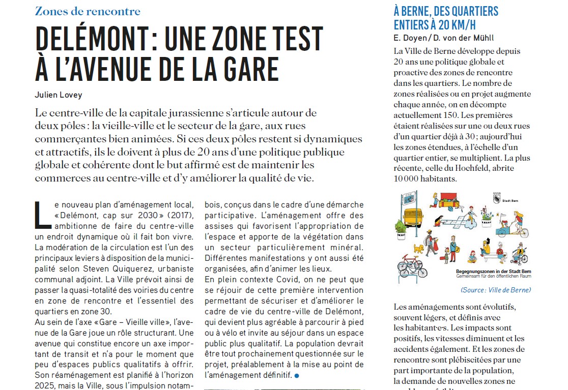 Un article paru dans la revue Rue de l'Avenir de Julien Lovey, responsable Citec Neuchâtel-Jura sur le nouveau plan d’aménagement local : « Delémont, cap sur 2030 ».