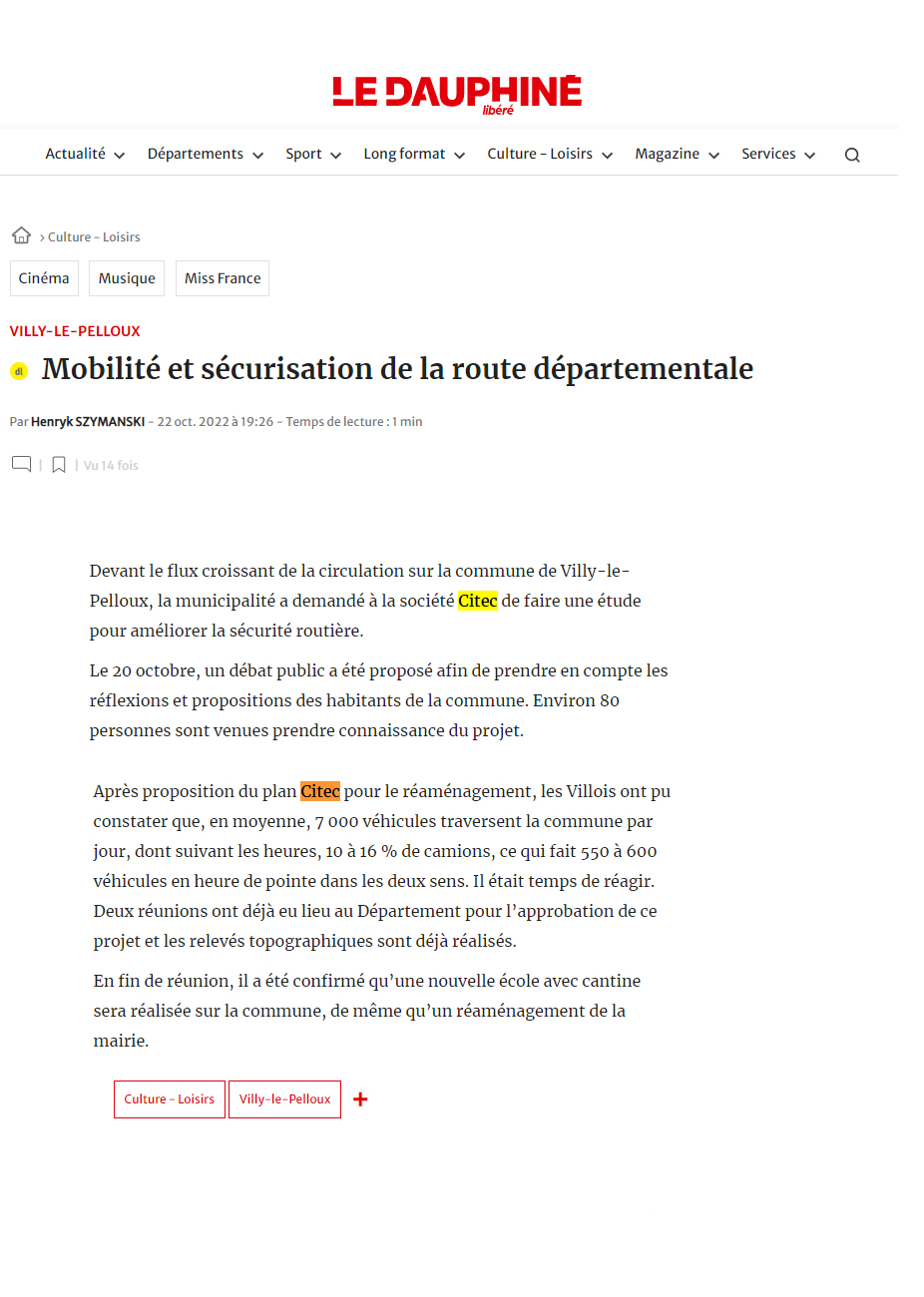 Devant le flux croissant de la circulation sur la commune de Villy-le-Pelloux, la municipalité a demandé à la société Citec de faire une étude pour améliorer la sécurité routière. Le 20 octobre, un débat public a été proposé afin de prendre en compte les réflexions et propositions des habitants de la commune. Environ 80 personnes sont venues prendre connaissance du projet.