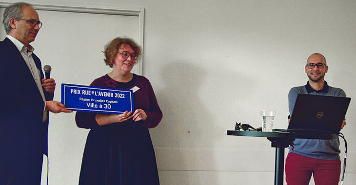 Les échanges se sont poursuivis avec la remise du prix Rue de l’Avenir attribué à la région Bruxelles Capitale (une des trois régions de l’État fédéral belge) pour avoir mis en place la ville 30 dès le 1er janvier 2021 avec 85 % du réseau à 30 ou moins, qui auparavant était à 60 %.