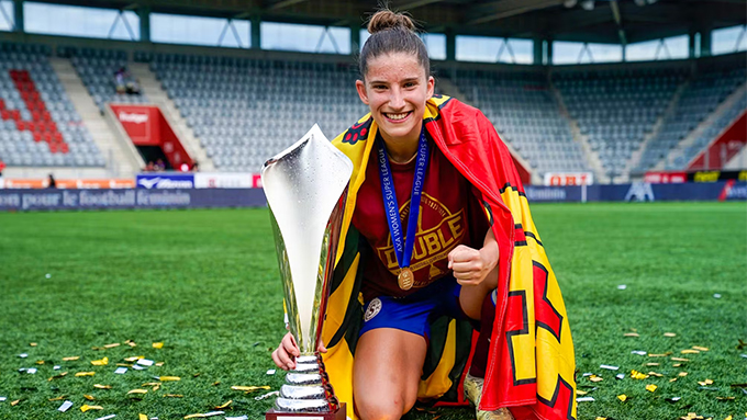 FOOTBALL - Laura Tufo, jeune footballeuse de 23 ans dans l'équipe du Servette FCCF, sponsorisée par Citec, est interrogée par 20 Minutes sur ses ambitions et sa volonté de se concentrer sur le football pendant une année.