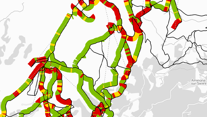 Pour répondre à ce défi, Citec a été mandaté par les acteurs du domaine skiable de Crans-Montana afin de réaliser un outil de modélisation du domaine skiable. L’objectif : estimer le nombre de skieurs présents sur chaque section (pistes et remontées mécaniques), à différentes périodes, et bénéficier d’un outil d’aide à la décision en termes d’investissements futurs et d’études d’accessibilité multimodale. Nos experts en Modélisation et en Mobilité de loisirs ont croisé les données skieurs (profils utilisateurs, horaires, remontées empruntées) avec des caractéristiques du réseau (largeur des pistes, altimétrie) et des relevés terrain, notamment via des traces GPS anonymes de skieurs volontaires, des vidéos et des comptages manuels. Cette approche a permis de créer un modèle agrégé, différenciant les périodes types d’affluence pour produire une cartographie précise des flux et de l’accessibilité.