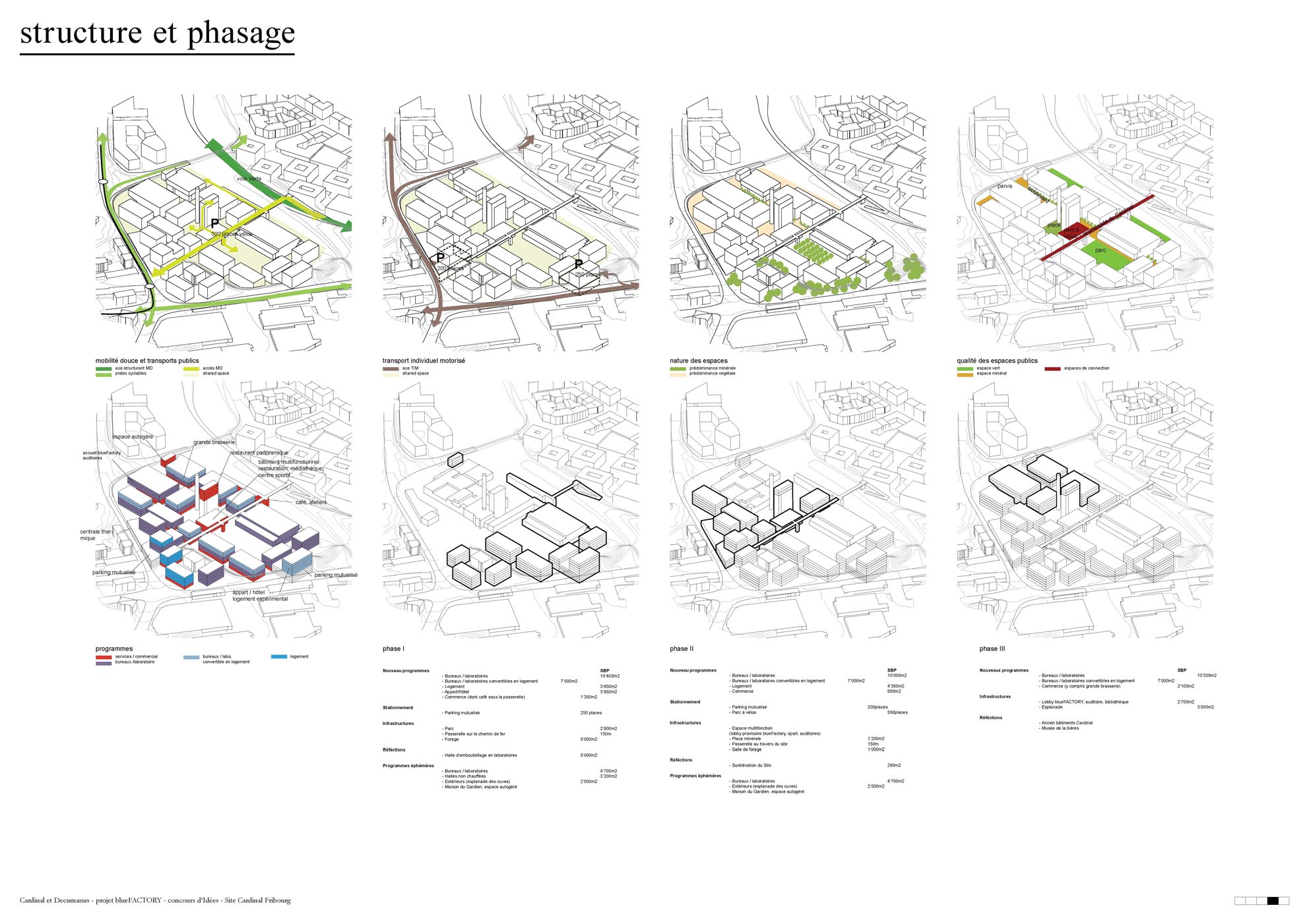 Le concours d’urbanisme est une étape indispensable du processus aboutissant à l’approbation du plan de quartier dont la mise à l’enquête devrait intervenir fin 2013. Après quoi, les travaux pourront commencer sur le site. L’objectif du concours était de définir un scénario global tenant compte de facteurs tels que l’urbanisme, le patrimoine, la mobilité et les aspects énergétiques. Le jury, composé de 13 personnes et présidé par Monsieur Jean Bourgknecht, Vice- Syndic de la Ville de Fribourg, a primé cinq projets sur les 25 soumis.