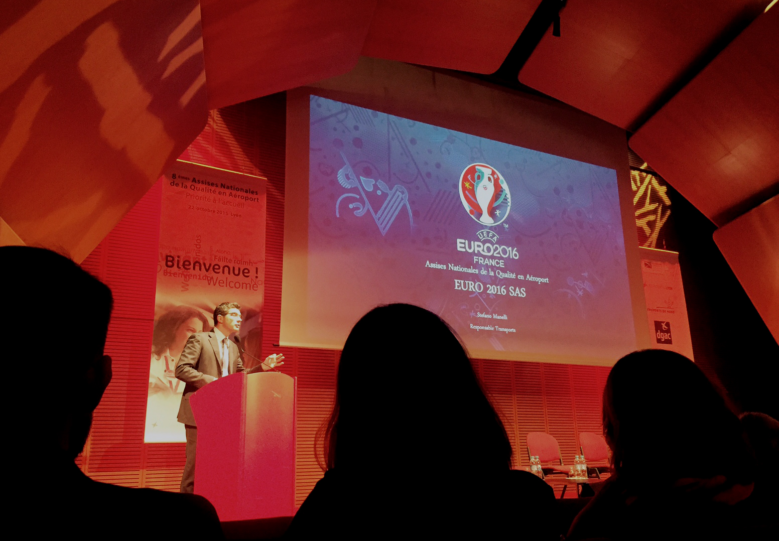 Tema della presentazione le esigenze per l’accoglienza dei passeggeri in occasione dei grandi eventi all’aeroporto e le buone pratiche, con un focus particolare sull’euro2016.
